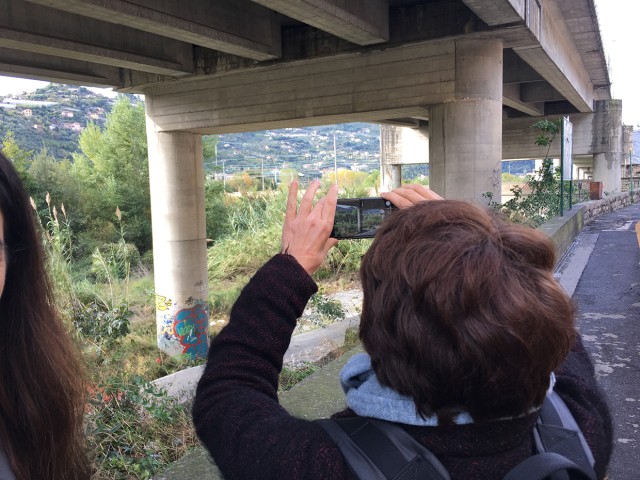 (1.07 MB)Marie Voignier en repérages dans la Vallée de la Roya et à Vintimille, Italie, 2019. Photo : thankyouforcoming.