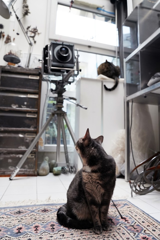 Avoir un atelier-logement est confortable, même si au début nous avons dû modifier considérablement le lieu pour aménager au mieux l’espace de vie, en fabriquant des mezzanines notamment. Mais savoir que l’on peut descendre à l’atelier pour travailler à toute heure, même la nuit, est très agréable. C’est un espace assez intime, parce que c’est également chez moi, mais outre les stagiaires qui parfois m’assistent, j’y reçois souvent des personnes pour des visites, y compris des groupes. C’est un lieu de travail, bien sûr, mais aussi de vie : il y a les chats qui sont là, je peux y faire un peu de yoga ou de méditation, écouter de la musique, généralement des nappes sonores sans paroles. Je passe beaucoup d’heures à ranger et à faire le ménage, un temps qui est très important, peut-être aussi important que le travail. Je comprends très bien qu’au Japon, le ménage soit lié à des rituels : c’est une activité méditative, où l’on met en place des procédés machinaux qui permettent à l’esprit de divaguer. C’est aussi un moment pour s’occuper de ses objets, en enlever la poussière, en prendre soin, et surtout les voir autrement, passer du temps avec eux. C’est comme lorsqu’on fait un grand rangement, on retrouve des objets, on les sort du passé et on peut renouer avec eux pour qu’ils nous amènent vers autre chose. Cela permet aussi d’organiser les matériaux, les outils, les échantillons, les éléments de quincaillerie qui peuvent servir pour des pièces à venir.