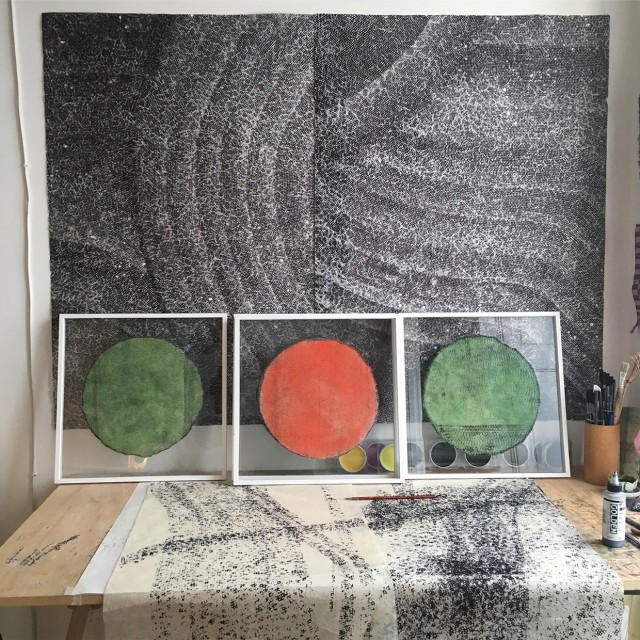 (881.6 KB)Alexandre Baldrei, Tambour, encre sur papier japonais, 108 cm de diamètre, 2021 et 30 cm de diamètre, 2019. (c) l'artiste.