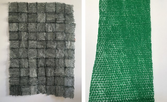 (730.55 KB)Alexandre Baldrei, Atelier, Sans titre, encre sur papier thaïlandais, 77 cm x 185 cm, et Sans titre, carton, bois colle, 150 cm x 70 cm x 115cm 2018 2019. (c) l’artiste