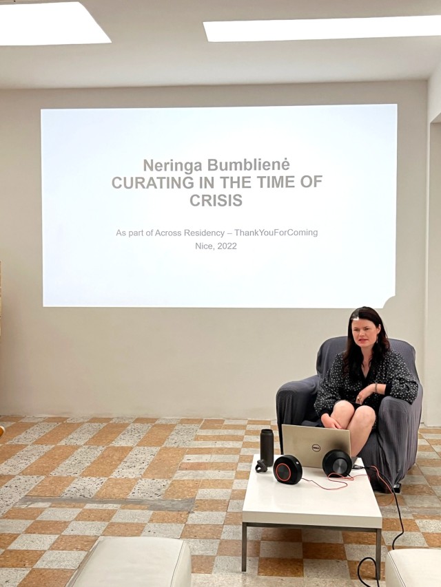(359.4 KB)"Curating in Times of Crisis", conférence de Neringa Bumbliene au Narcissio, Nice. Mai 2022, photo thankyouforcoming.