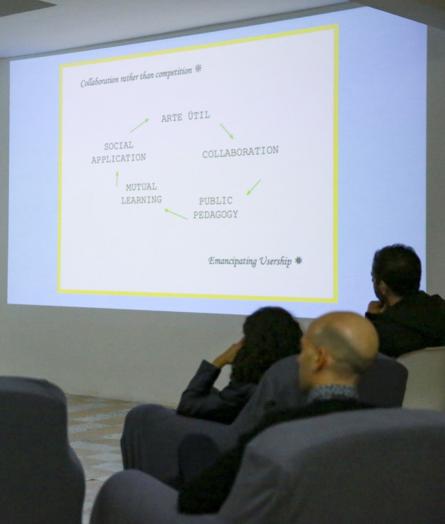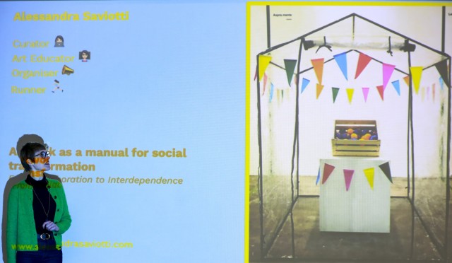 Alessandra Saviotti parlera en particulier de sa collaboration avec l'Association Arte Útil, une para-institution fondée par Tania Bruguera en 2013. Arte Útil - est un concept qui met en évidence le potentiel de l'art pour provoquer un changement social. Il s’est forgé via 8 critères formulés en étudiant des projets qui ont utilisé l'art comme un alibi pour parvenir à la transformation de certaines situations problématiques. La création d'archives retraçant l'histoire de l'Arte Útil est rapidement devenue un moyen de révéler une histoire autre, qui inclurait des pratiques jusqu’alors marginalisées dans le débat sur l'art contemporain.