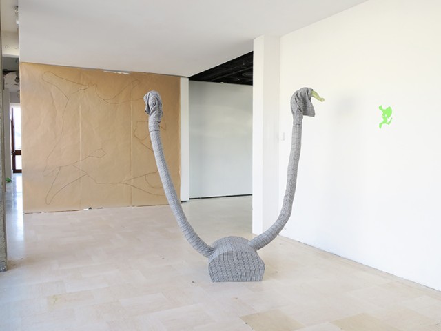 Improvisation, polyrythmie, syncope, le vocabulaire du souffle propre à l’énergie du jazz se prête bien à la description des œuvres de Mouna Bakouli. Par le rythme, le tempo, le rire et la dérision, elle redonne vie à des pantins désarticulés, des petits pois déshydratés, des intestins entrelacés.