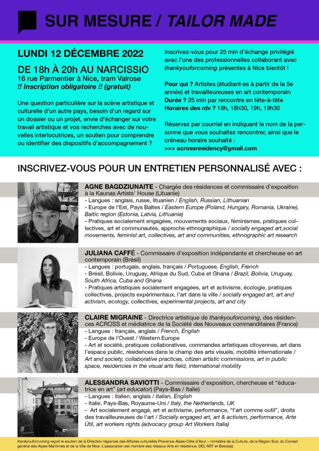 Inscrivez-vous pour 25 min d’échange privilégié avec l’une des professionnelles collaborant avec thankyouforcoming présentes à Nice bientôt !