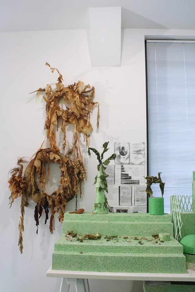 (313.23 KB)Ivana Adaime Makac, Larmes de Lycurgue, Installation, choux dans différents états, végétaux, technique mixte. Exposition personnelle aux Ateliers vortex, Dijon, 2015. Crédit photo Cecilia Philippe.