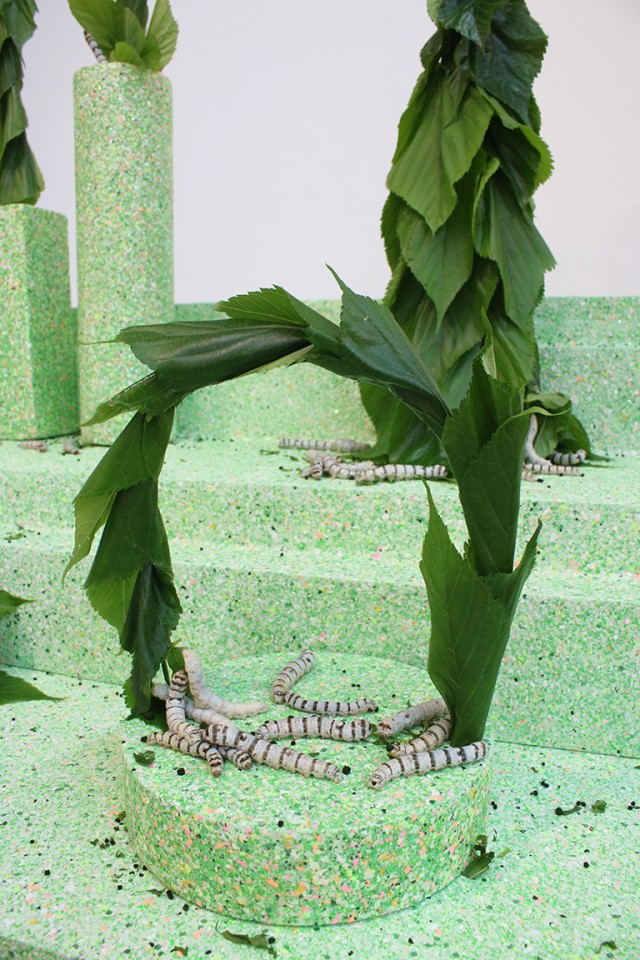 (1.04 MB)Ivana Adaime Makac, Rééducation (installation évolutive à entretenir) à l’exposition Nonchalance et monstruosité, 4 jours dans la vie des vers à soie. Villa Belleville, Paris. (c) l'artiste.