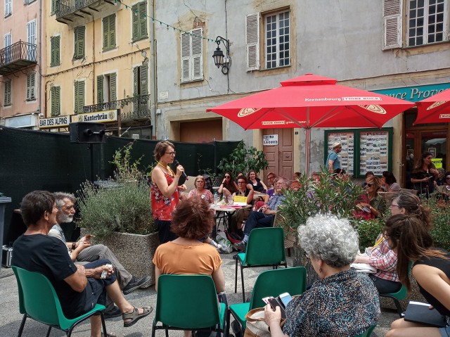 (1.19 MB)Présentation publique du projet lors du Festival des Passeurs d'Humanité à Breil sur Roya, par la médiatrice et les commanditaires, 18 juillet 2019. Photo : thankyouforcoming.