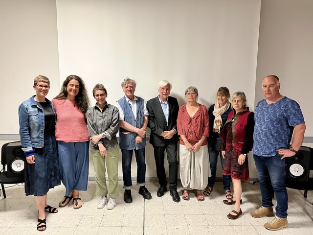 (947.6 KB)Les commanditaires, l'artiste et la médiatrice à l'issue de la première présentation du film au groupe à Breil-sur-Roya, Mai 2022. Photo : thankyouforcoming.