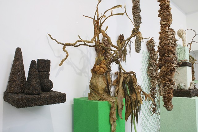 (313.23 KB)Ivana Adaime Makac, Larmes de Lycurgue, Installation, choux dans différents états, végétaux, technique mixte. Exposition personnelle aux Ateliers vortex, Dijon, 2015. Crédit photo Cecilia Philippe.