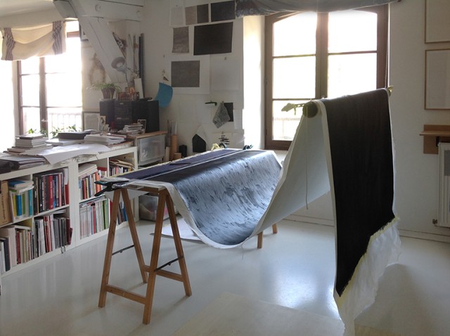 J’ai parfois de longues périodes, plusieurs mois, pendant lesquelles je ne produis pas. En réalité dans ces moments-là je réfléchis toujours, je visite des expositions, je rencontre des personnes, je visite des ateliers, je lis. Et des travaux naissent de tous ces échanges que je mets dans un coin de mon cerveau. C’est bien de ne pas être uniquement dans sa bulle, de savoir se nourrir ailleurs. Et puis de garder des projets en tête ; je viens de réaliser tout récemment un dessin auquel je pensais depuis 2014. Moi, je ne suis jamais pressée, et mieux vaut ne pas être pressée d’ailleurs."