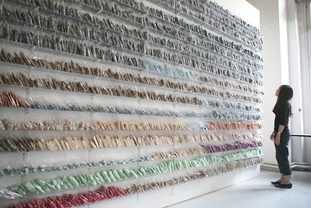 (401.93 KB)Natalia Villanueva Linares, COLORIAL, 2014. 300 bobines de fils de couleurs usés. (c) l'artiste.