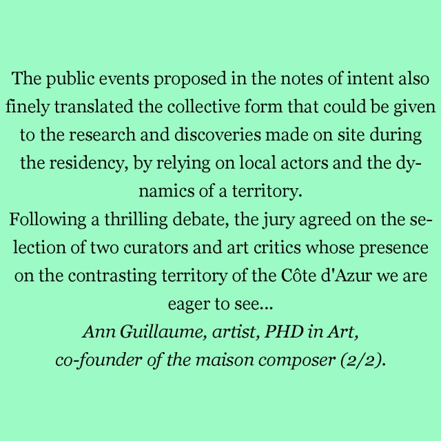 After having consulted all the applications received with great interest and attention, we can agree that the jury wished to temper the adage (formulas impoverish thought, don't they!) according to which "to choose is to forsake": in the end, two laureates will each benefit from three weeks of residency in Nice and on the Côte d'Azur, in April/May, then May/June 2023.
