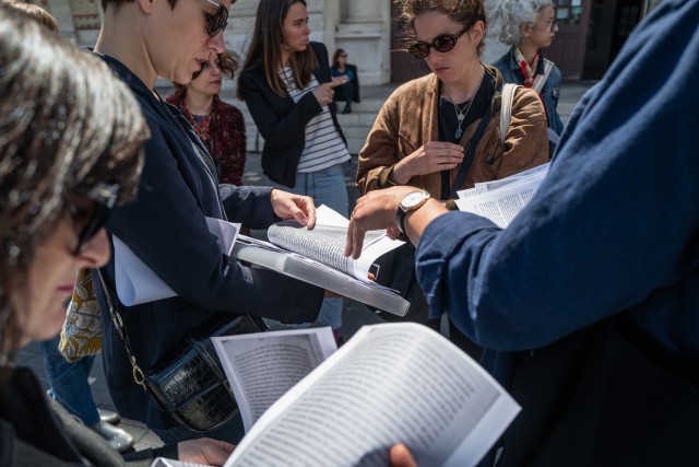 Un texte de Gombrowicz (le même pour chaque personne) en plusieurs traductions sera utilisé pour la performance. Des copies imprimées seront disponibles le jour même pour celles et ceux qui souhaitent participer à la lecture.