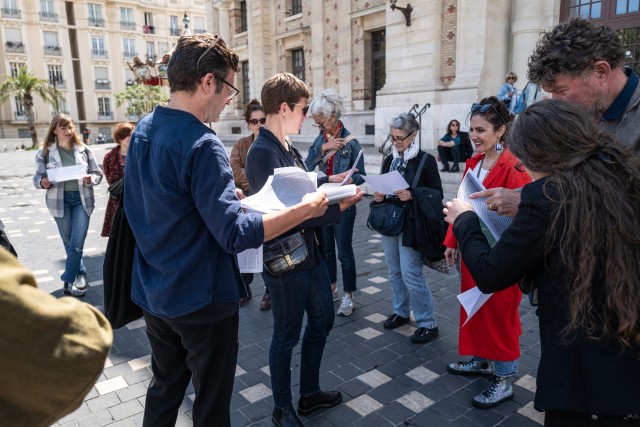En prenant comme point de départ le corps (de l'œuvre) nomade de l'écrivain et en le mettant en scène à travers les langues et les différents accents des interprètes, nous essaierons de susciter le sentiment d'appartenance à une ville, signalant son espace par la présence d'un corps collectif alternatif.